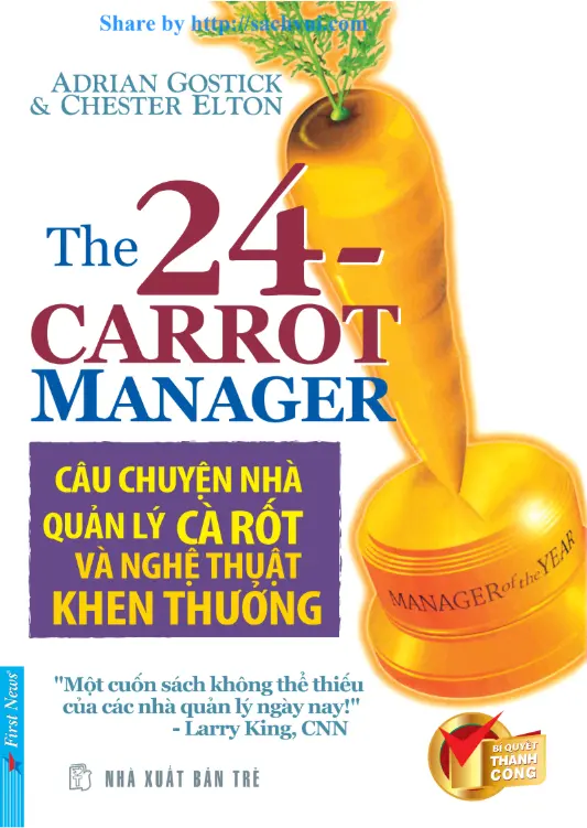 File Sách Câu Chuyện Nhà Quản Lý Cà Rốt PDF – Adrian Gostick & Chester Elton là một cuốn sách ngắn gọn nhưng có sức ảnh hưởng lớn trong lĩnh vực quản trị nhân sự. Tác phẩm xoay quanh “nghệ thuật khen thưởng” – yếu tố tưởng nhỏ nhưng lại là chìa khóa quyết định tinh thần làm việc, hiệu suất và sự gắn bó của nhân viên. Với cách kể chuyện nhẹ nhàng, gần gũi và dễ hiểu, sách Câu Chuyện Nhà Quản Lý Cà Rốt PDF đã trở thành tài liệu hữu ích cho các nhà quản lý, lãnh đạo đội nhóm và bất kỳ ai muốn xây dựng môi trường làm việc tích cực.